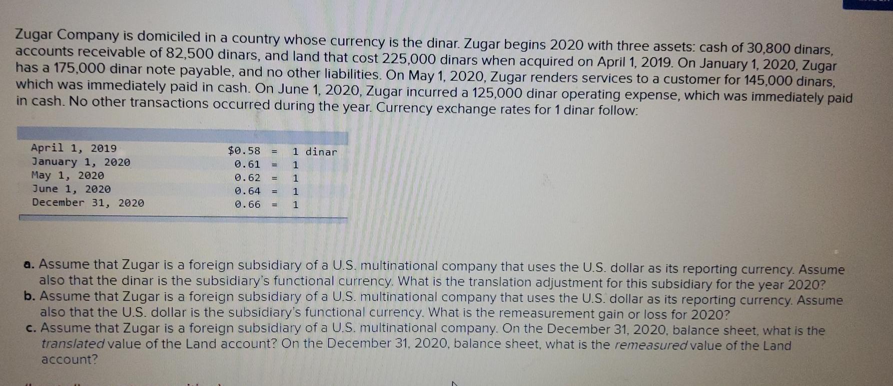 Solved Zugar Company is domiciled in a country whose