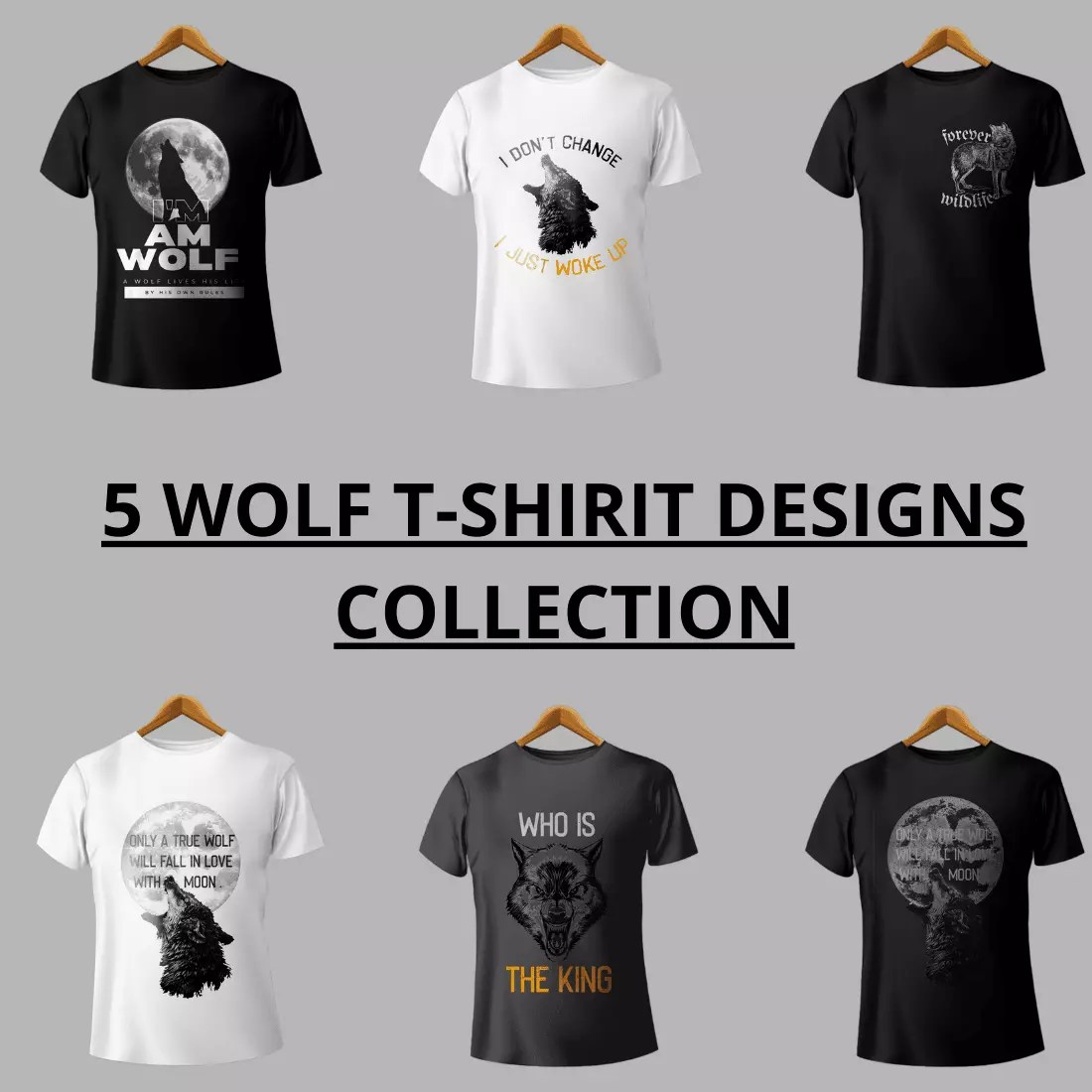 5 beautiful wolf t shirt design bundle in PNG & PSD format collection