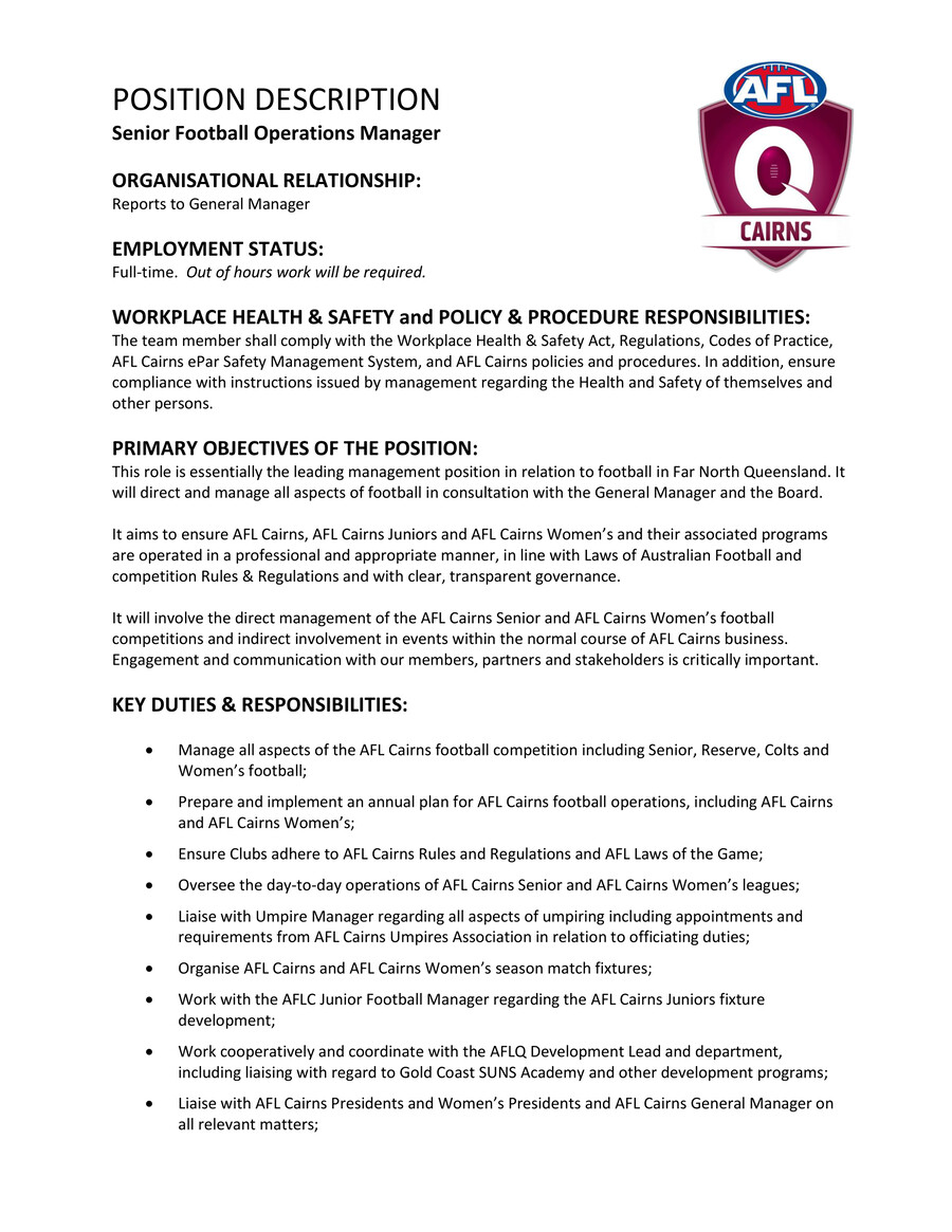 AFLC Football Operations Manager PD 2022 by AFLCairns Flipsnack