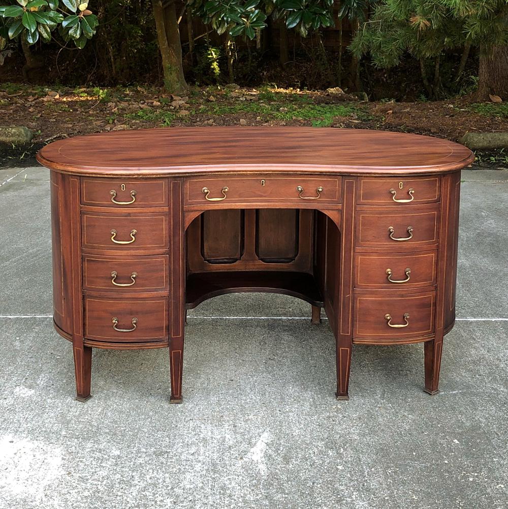 Antique English Kidney Shaped Mahogany Desk For Sale at 1stDibs