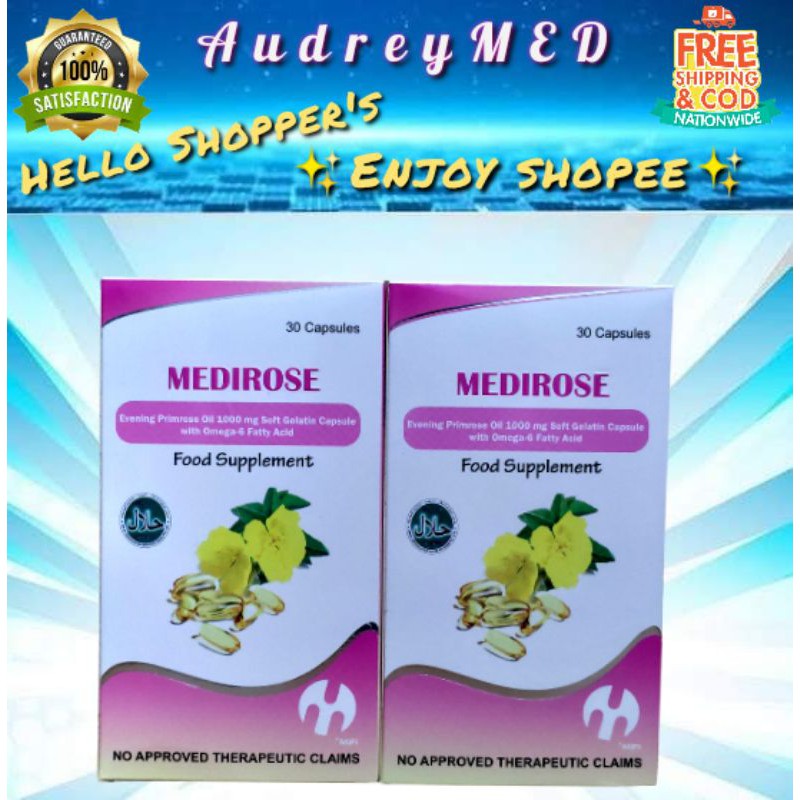 MEDIROSE (Evening Primrose Oil + Omega6) 30 Softgel Capsules Shopee