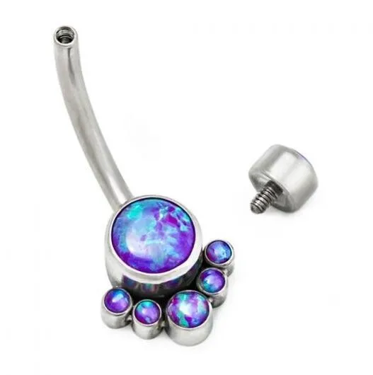 Bezel Set Opal Navel Ring Body Piercing Jewelry G23 Titanium Piercing