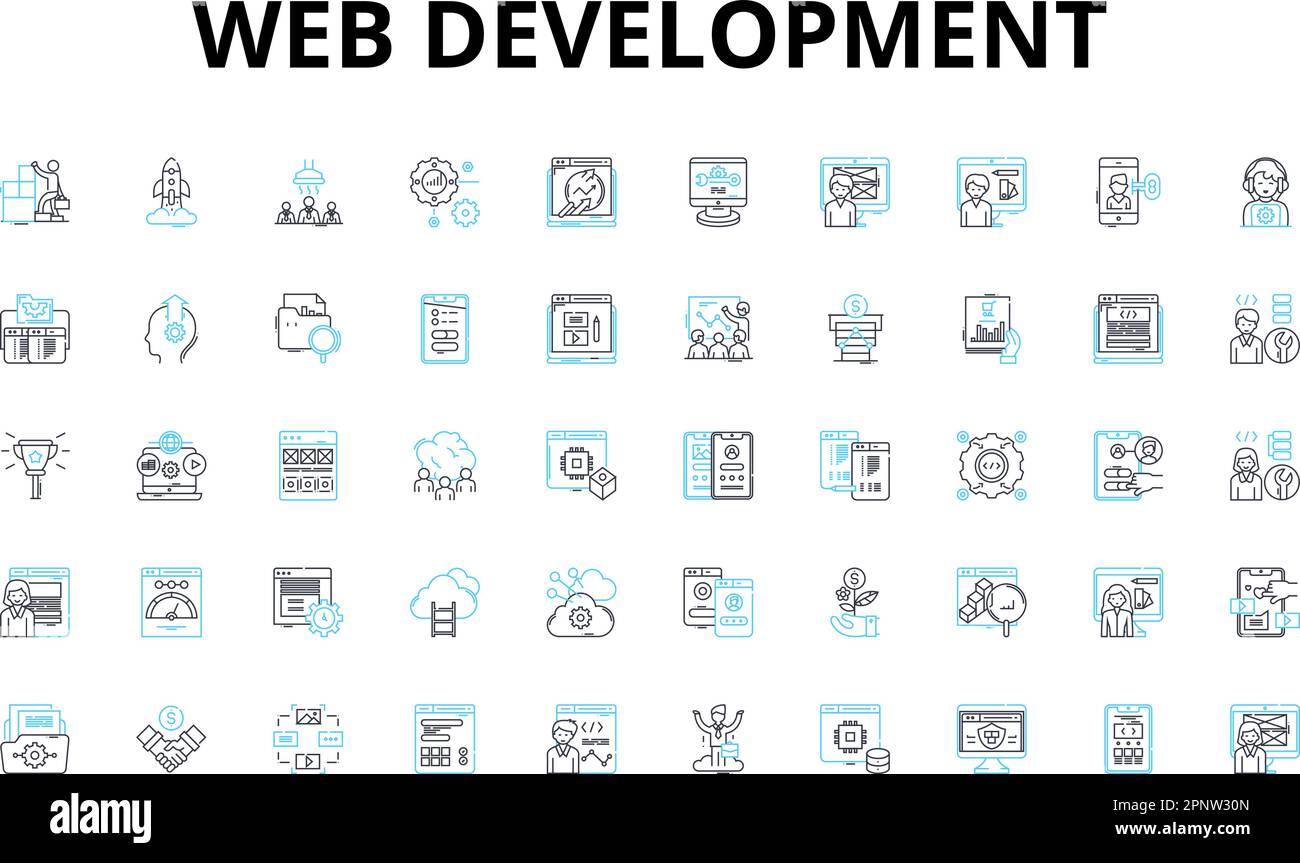 development linear icons set. HTML, CSS, JavaScript, PHP, Python