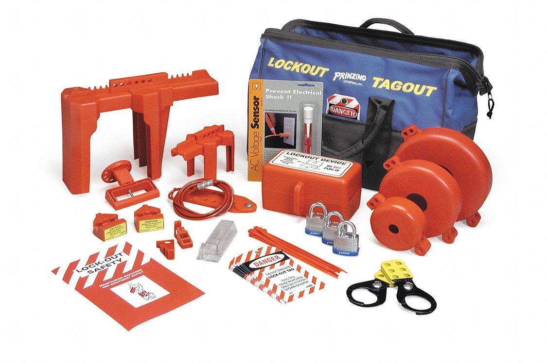 BRADY Portable Lockout Kit, Filled, Electrical/Valve Lockout, Carrying Brady Valve Lockout Kit This is our most extensive lockout tagout kit and includes everything a larger company might need for their lockout tagout programme as well as. our combination lockout kit gives you everything you need to lock out the most common mechanical and electrical control points part: protect employees and comply with osha's lockout standard with this convenient lockout kit. Brady Valve Lockout Kit.