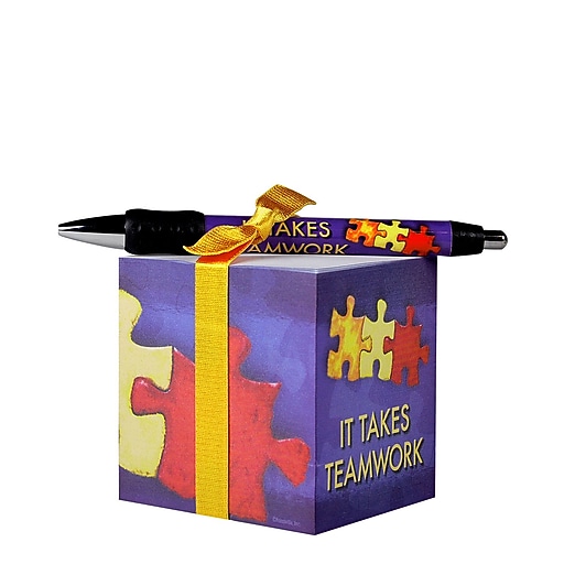 Baudville® Sticky Note Cube W/ Pen Set, It Takes Teamwork at Staples