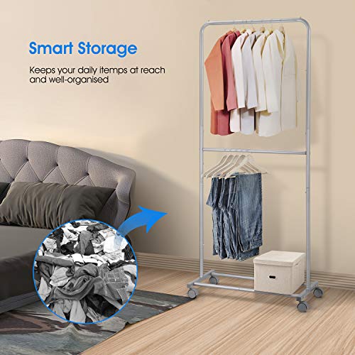 Simple Trending Double Rod Clothing Garment Rack, Rolling Clothes