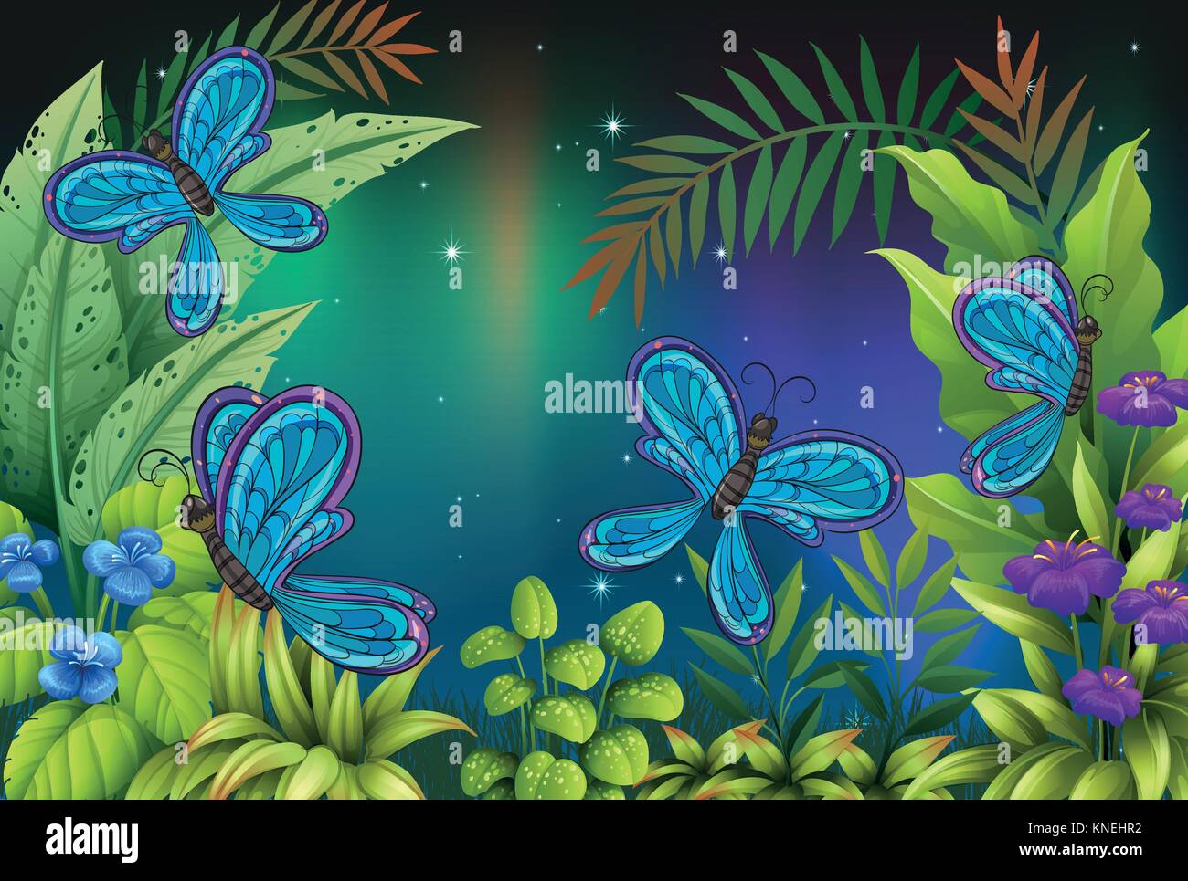 Illustration of a garden with many butterflies Stock Vector Image & Art