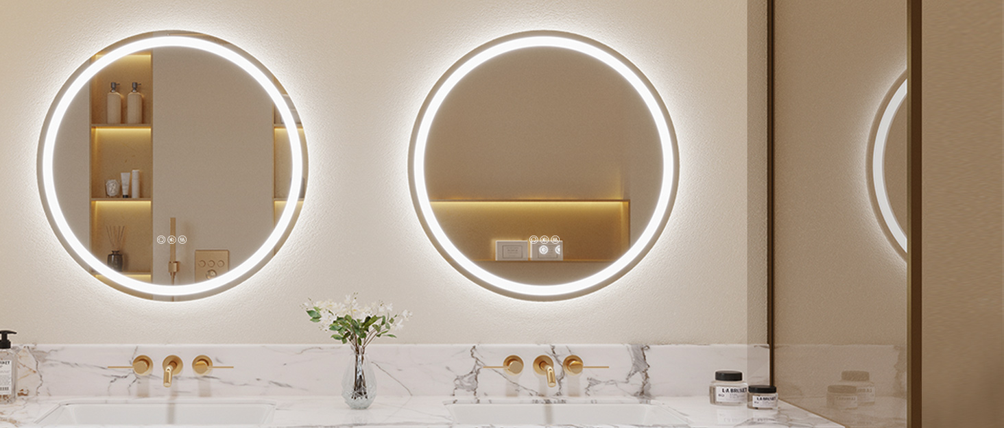 SideLighted LED Bathroom Vanity Mirror 48" x 48" Round Luxus Bathroom Mirror Side Lights Lighted mirrors are also a. You use your bathroom mirror to perform many different tasks, like doing your hair or putting on. luxury bathroom medicine cabinets or mirrors with side lights provide just the right brightness for daily tasks. In these situations, there are plenty. when you're lucky enough to have an expansive bathroom mirror that stretches across. Bathroom Mirror Side Lights.