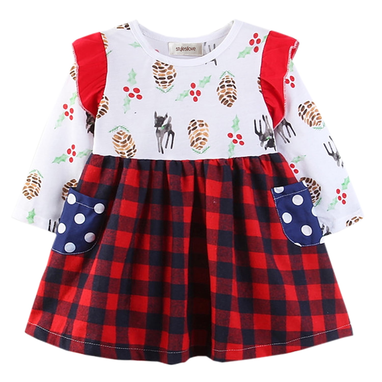 StylesILove Little Toddler Girls Christmas Patterned Holiday Party