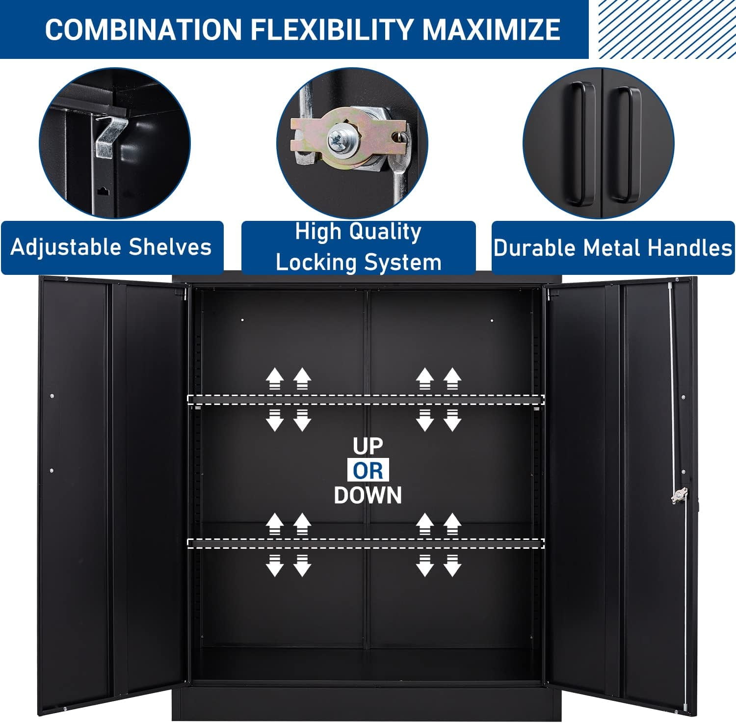 Combination Metal Storage 36x18x72 Black Metal storage Black Metal Cabinets Explore a variety of designs, finishes, and sizes to find the ideal cabinet that complements your unique style and fits perfectly within your living. Intergreat black metal storage cabinet with lock,72 tall lockable garage storage cabinet with doors and shelves, cabinets for home. Black kitchen cabinets serve as a stunning backdrop that allows other elements of your kitchen to shine.. Black Metal Cabinets.