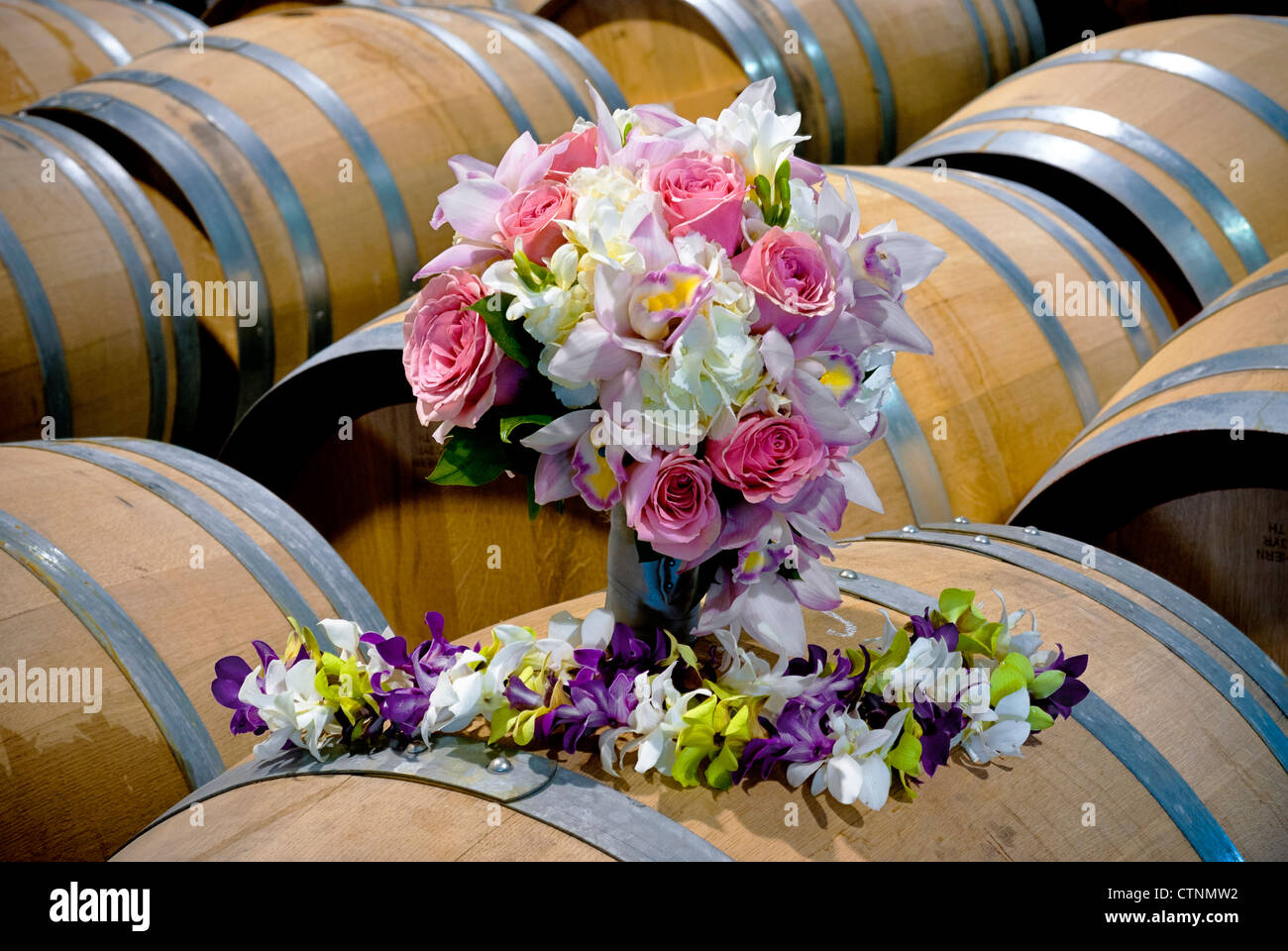 Bundle of flowers add color with this wine cellar Stock Photo Alamy