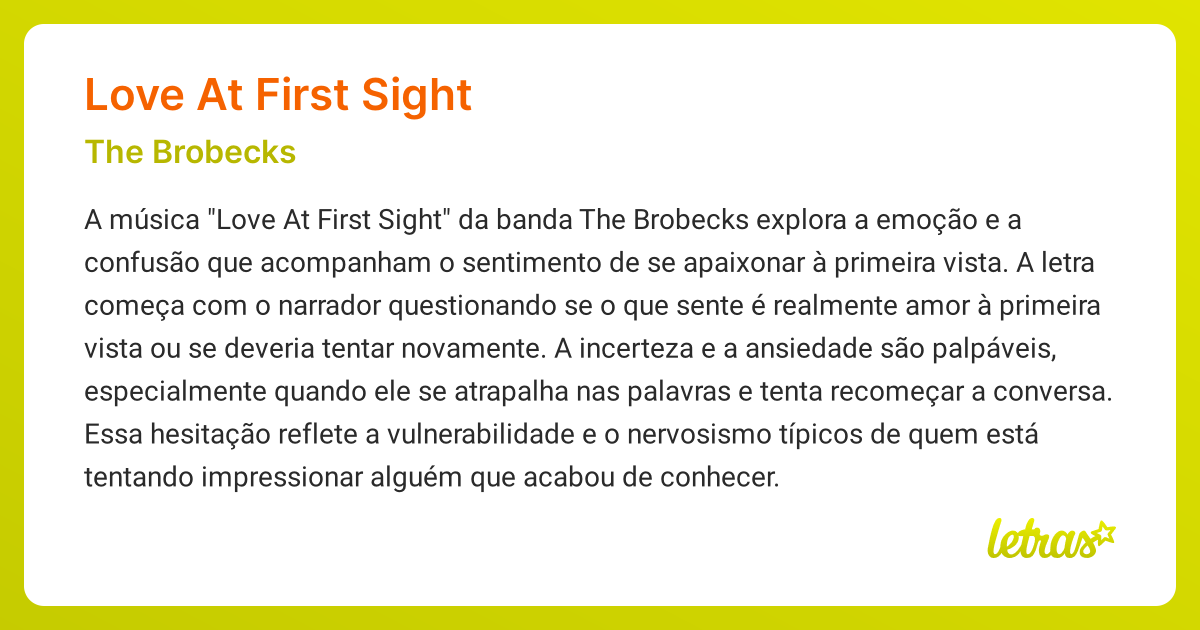 Significado da música LOVE AT FIRST SIGHT (The Brobecks) LETRAS.MUS.BR