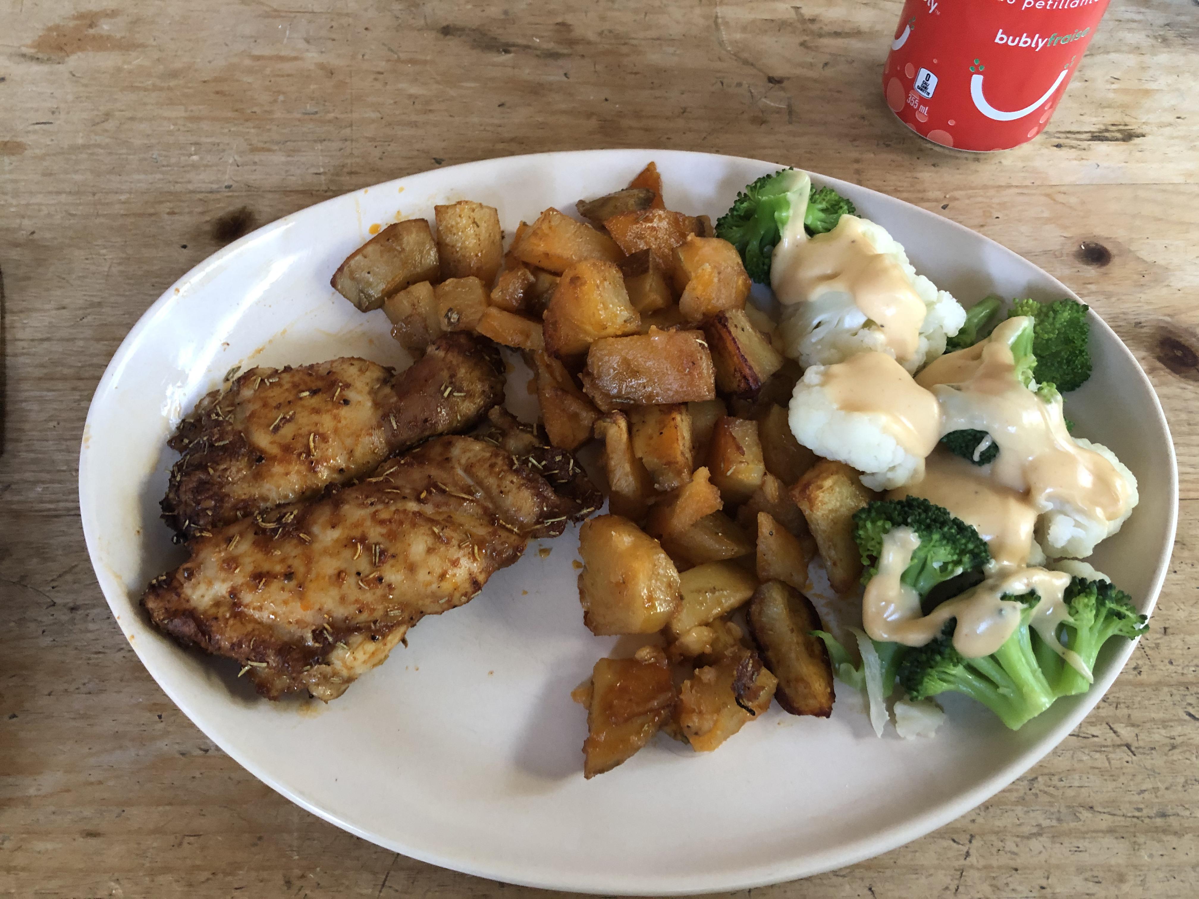Rosemary Paprika Chicken and Potatoes with Steamed Veggies Covered in