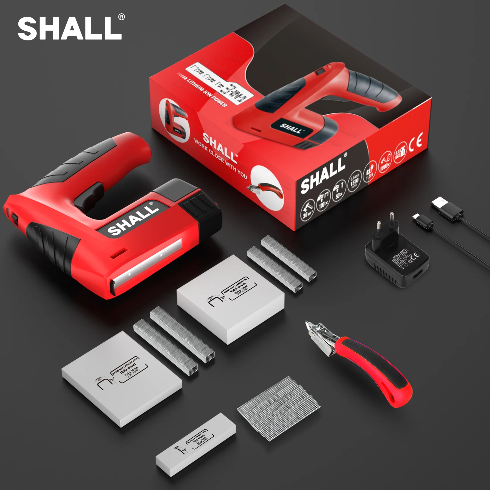 SHALL 4V Cordless Staple Gun 3in1 Rechargeable Brad Nailer Set with