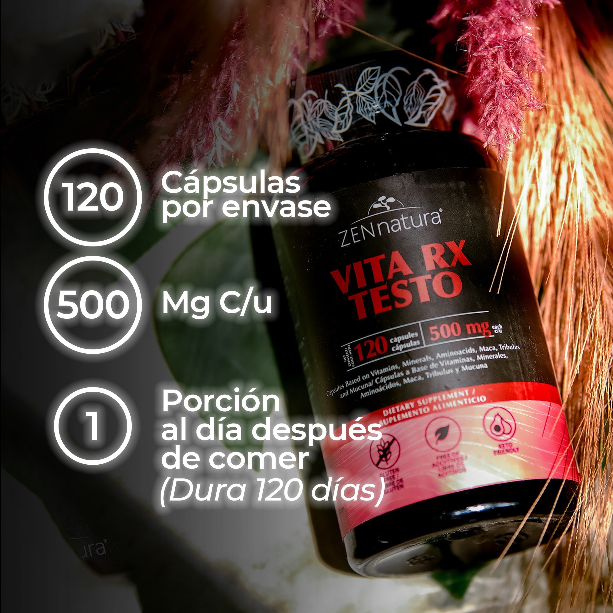 VITA RX TESTO 500MG MAGNESIO, TRIBULUS, MACA NEGRA ZenNaturaMX