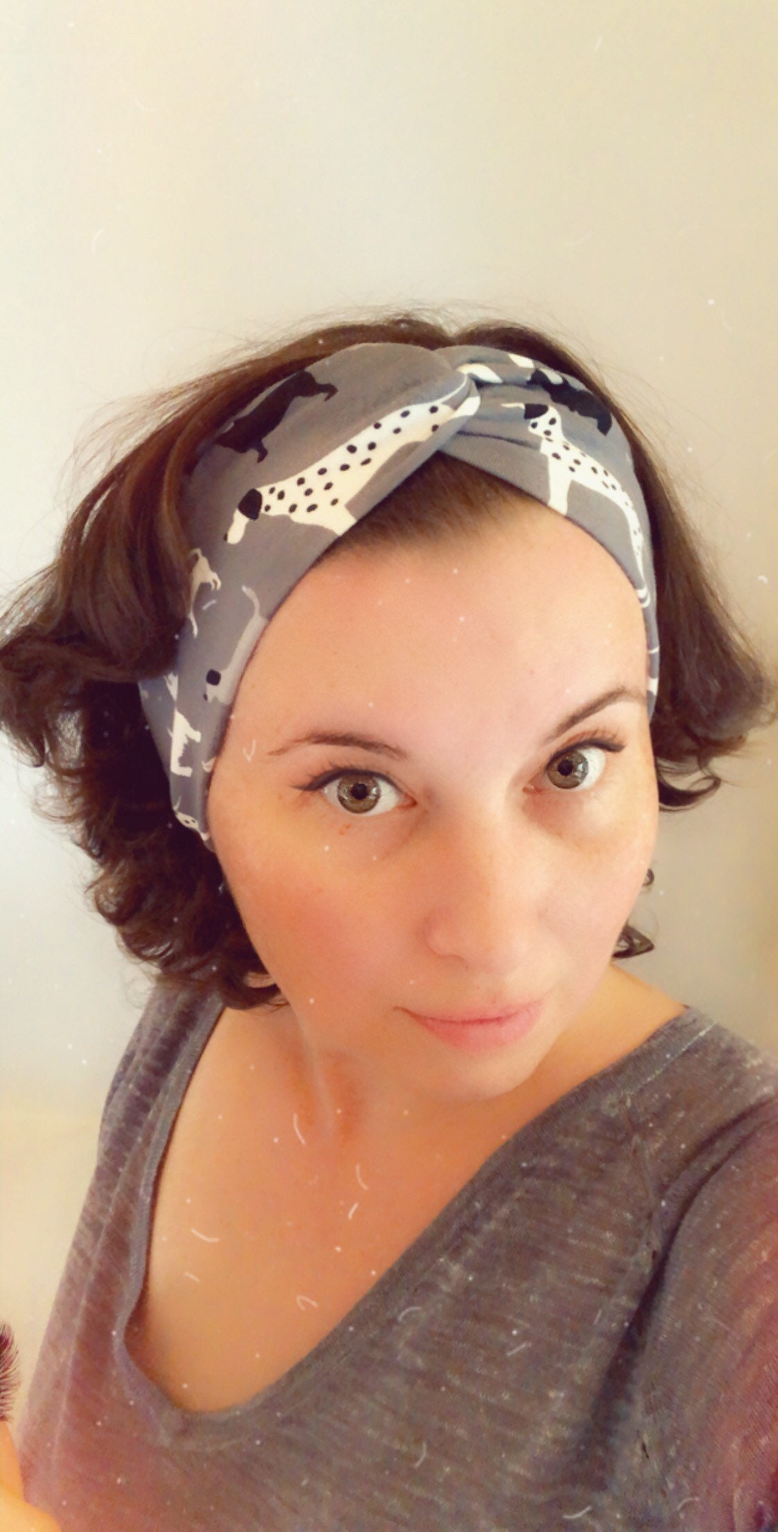 Grey with dogs, Knotted Headband, Turban Headband, Fabric Headband