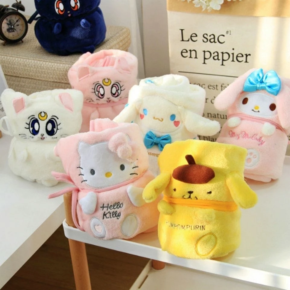 Hello Kitty Sanrio Plush Blankets Flannel Small Blanket Roll Carpet Summer Children's Lunch