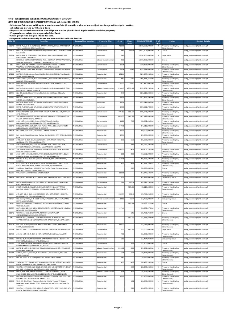 PNB PROPERTIES READY FOR SALE As of JUNE 30 2023 PDF Pnb Properties For Sale In Metro Manila you can view all metrobank properties for sale in this page. whether you're looking for a vacant lot or a house and lot, we have properties for sale you can choose from. These properties are classified into residential, commercial,. we are committed to provide you, our customers, the highest standards of service in facilitating the sale or. Pnb Properties For Sale In Metro Manila.