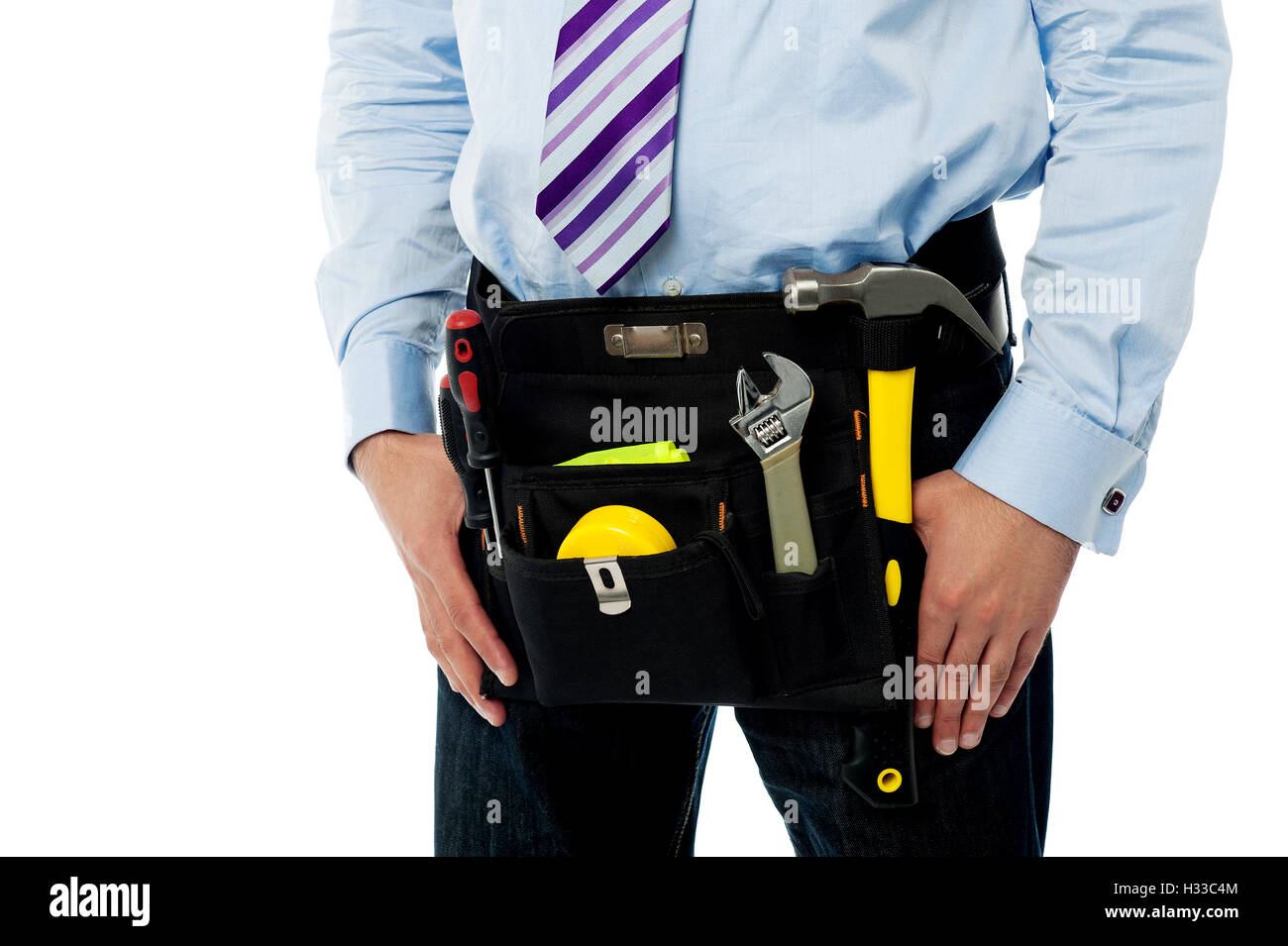 Closeup image of handyman tool belt Stock Photo Alamy