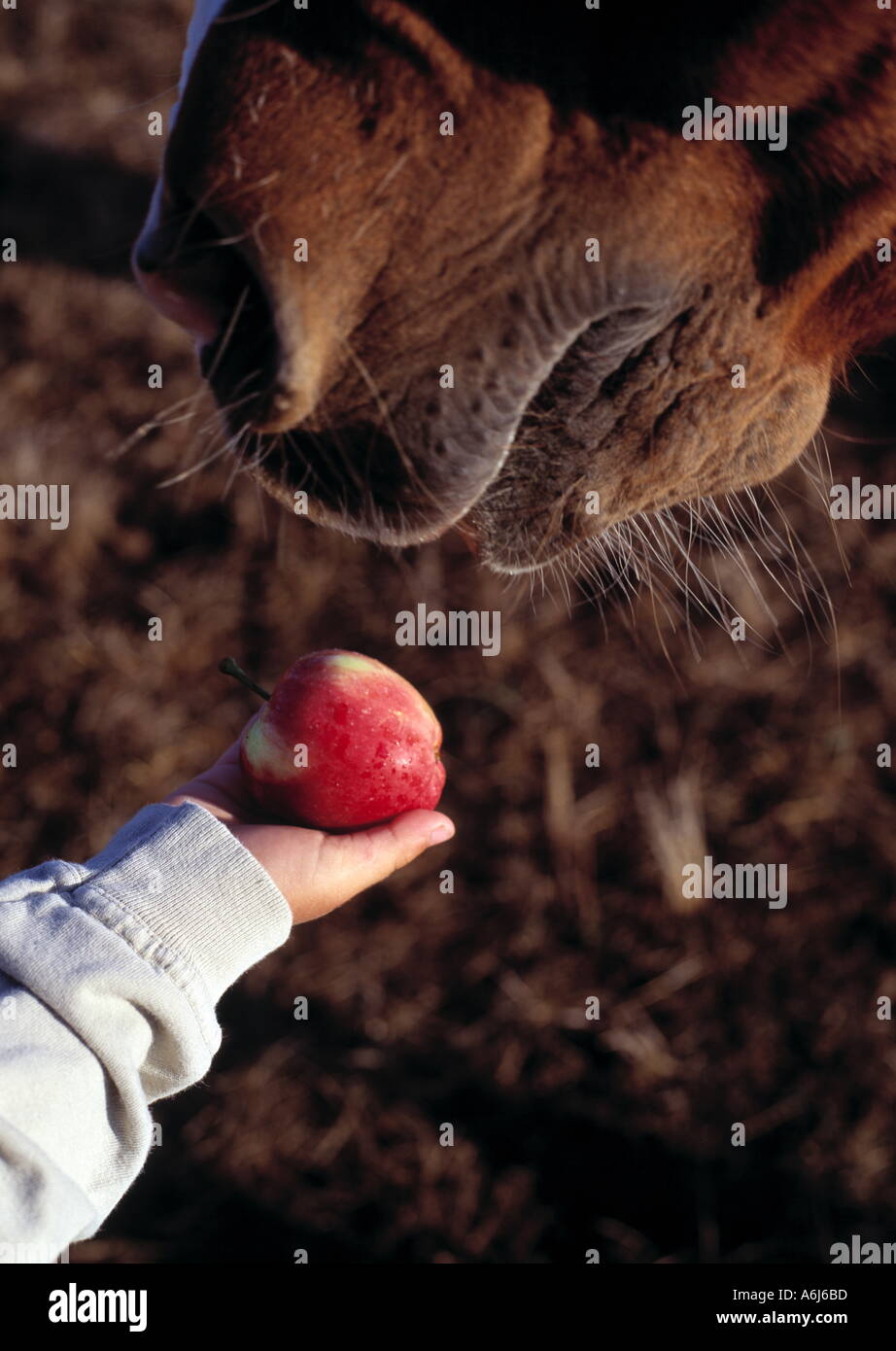 Feeding An Apple to a Horse Stock Photo Alamy How Do You Feed A Horse An Apple you can feed your horse apples, but you should only give them a few pieces. there’s a way to feed an apple to a horse: If you drop the apple,. we will discuss how to feed a horse an apple as well as when not to feed them, overfeeding and a reminder about. This guide will assist. How Do You Feed A Horse An Apple.