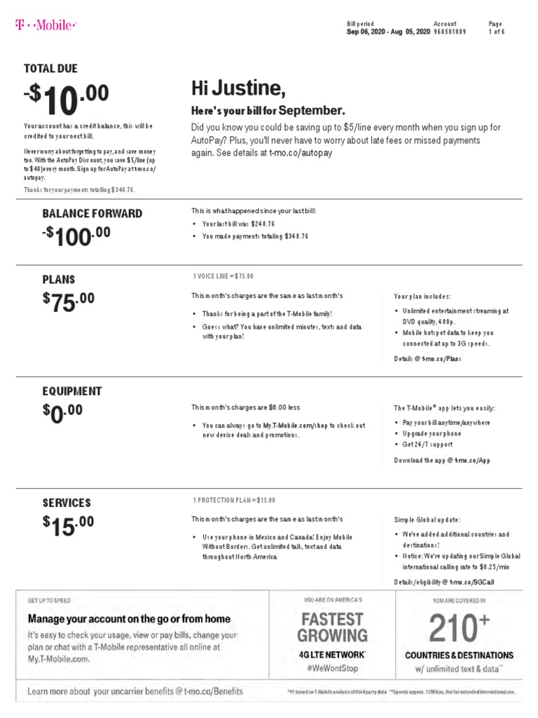 Justine, Total Due Here's Your Bill For PDF T Mobile Us Cheque