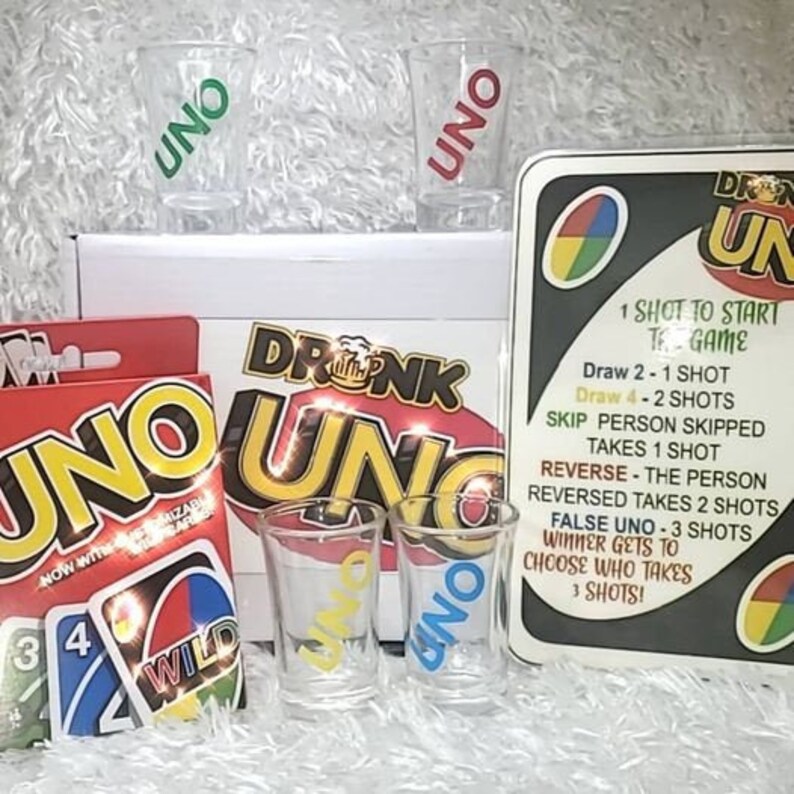 Drunk UNO Game Set 6 Shot Glasses, Birthday Gift for Her, Birthday Gift for Him, Party Games Online Drunk Uno Every child knows uno and nearly all of us loved to play the card game. In this party game variation, you play a traditional round of uno with a few intoxicating new rules added to the mix. Drunk uno is a fun, simple addition to your drinking game lineup—all you need is a deck of uno cards, some friends, and. Online Drunk Uno.