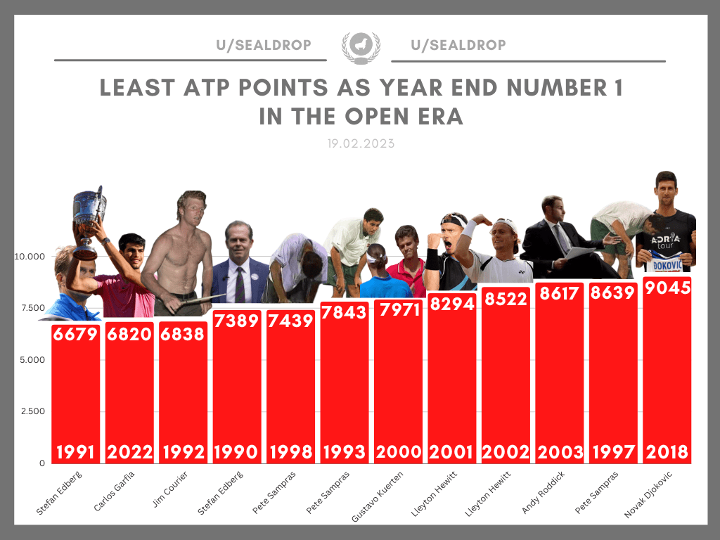 Least ATP Points as Year End Number 1 in the Open Era r/tennis