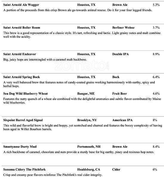 Menu at The Brass Tap pub & bar, North Naples