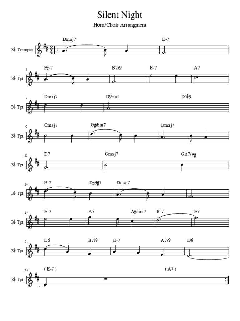 Christmas. Silent Night, Holy Night Alto Sax, Bass Silent Night Horn 1.3.7 for 2 horns, 2 flugelhorns, 2 trumpets, 4 trombones and tuba (rondeau) 1.3.8 for clarinet, saxophone, trumpet and organ (alici). Free music!silent night is one. Stille nacht, heilige nacht) is a popular christmas carol, composed in 1818 by franz xaver gruber to lyrics by joseph mohr in. Silent night for solo horn in f. Download and print in pdf. Silent Night Horn.