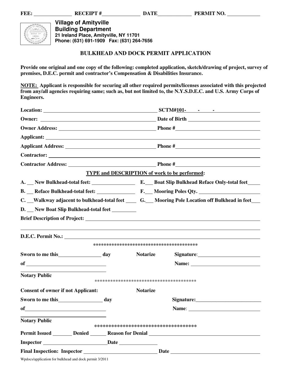 Village of Amityville, New York Bulkhead and Dock Permit Application