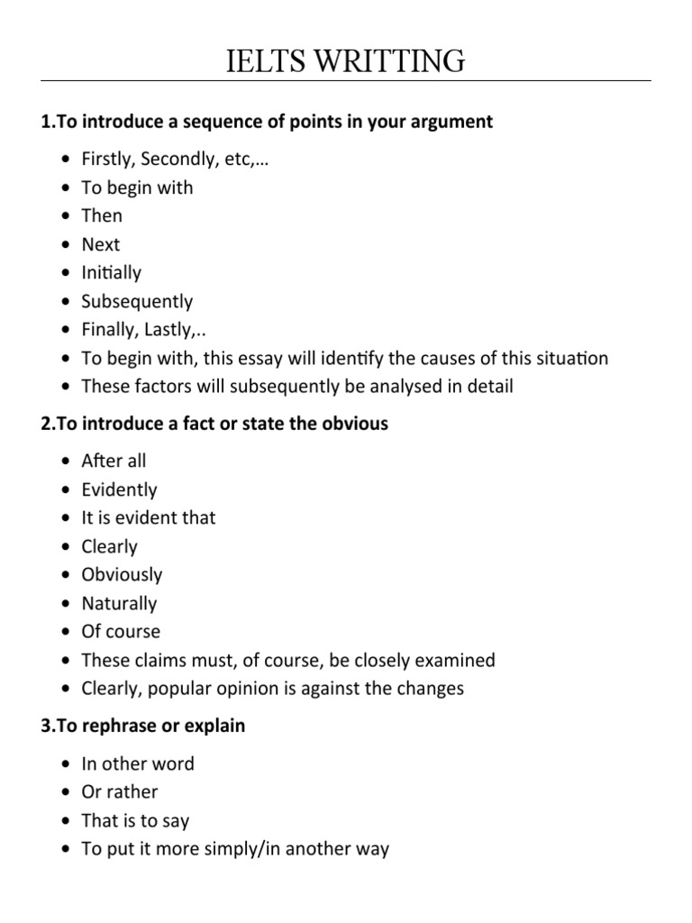 Ielts Writting 1.to Introduce A Sequence of Points in Your Argument PDF
