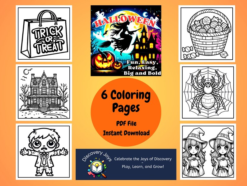 Halloween Coloring Pages Candy, Haunted House, Zombie, Witch, Spider