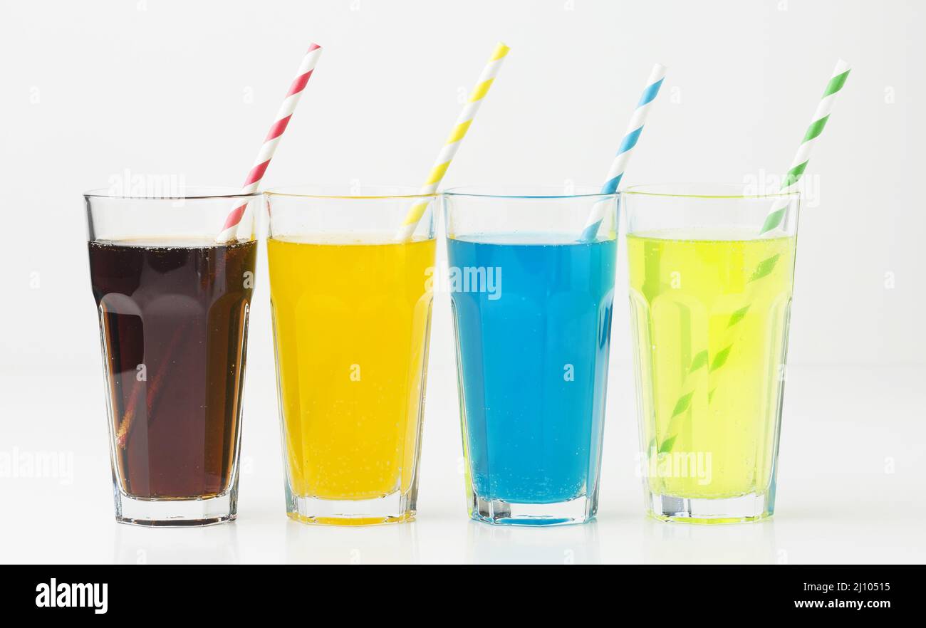 Front view soft drinks glasses with straws Stock Photo Alamy