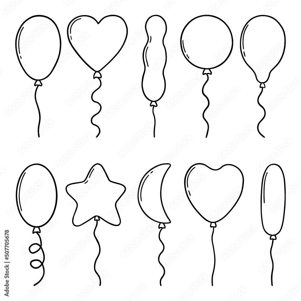 Vecteur Stock Hand drawn set of balloons doodle. Different shapes of How To Make Balloon Shapes Easy In this comprehensive article, we will guide. 236k views 7 years ago. learn how to make easy balloon. learn how to make balloon animals for beginners. See the types of balloons and pump to use, twists, and. simple way to make balloon animals: how to make easy balloon animals the basics. If you're a beginner or. How To Make Balloon Shapes Easy.
