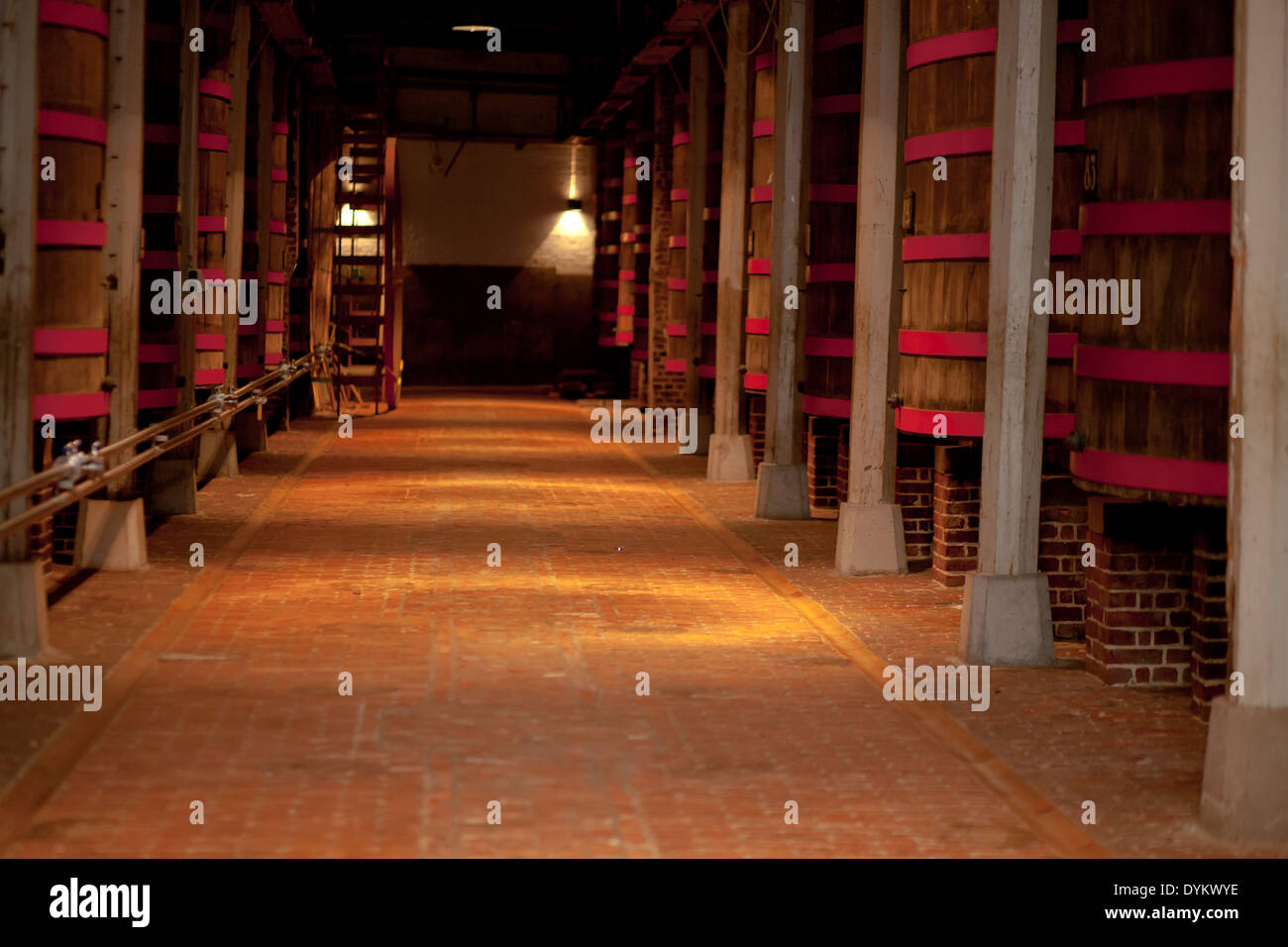 hall showing the traditional beer brewing wooden barrels for the