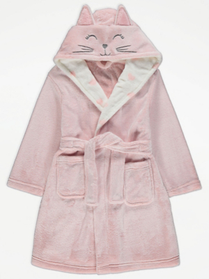 Pink Cat Hooded Dressing Gown Kids at ASDA