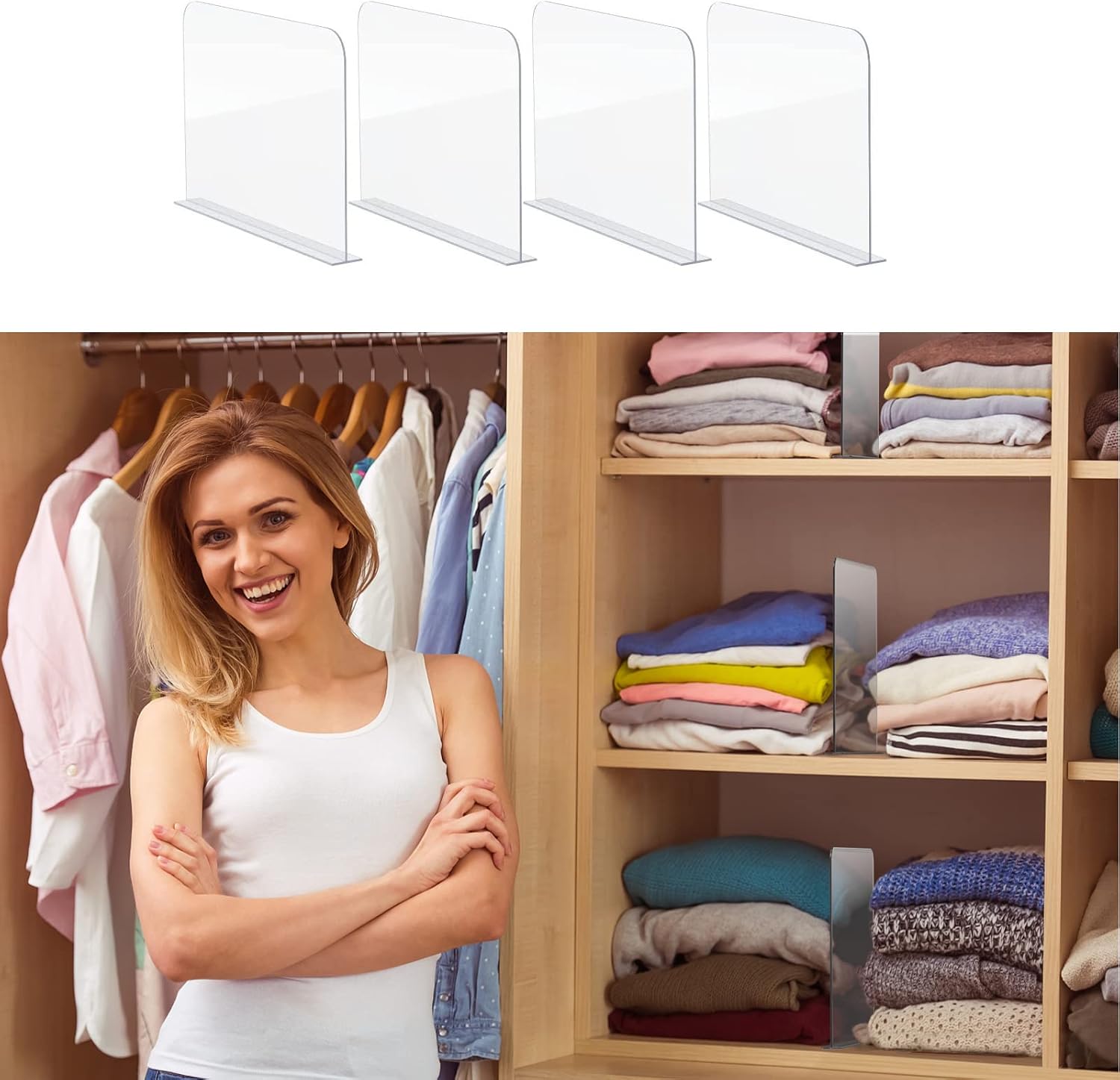 GOFI Acrylic Shelf Dividers 4 PCS Clear Shelf Dividers