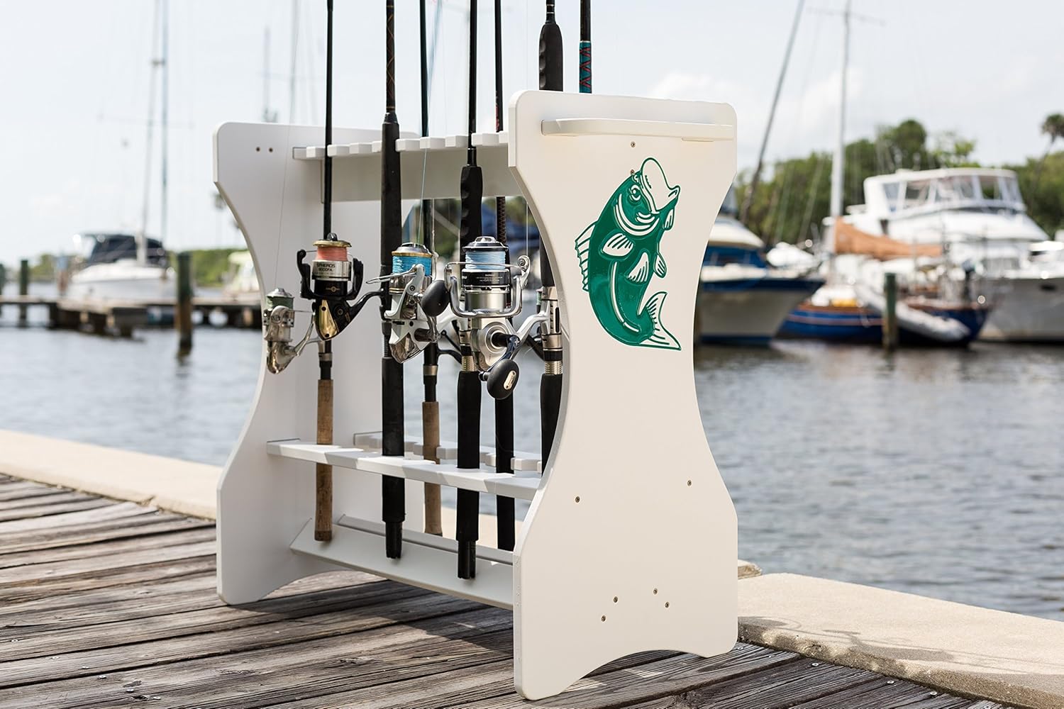 Bass Engraved Fishing Rod Rack Waterproof Organize and Store up to 24 Fishing