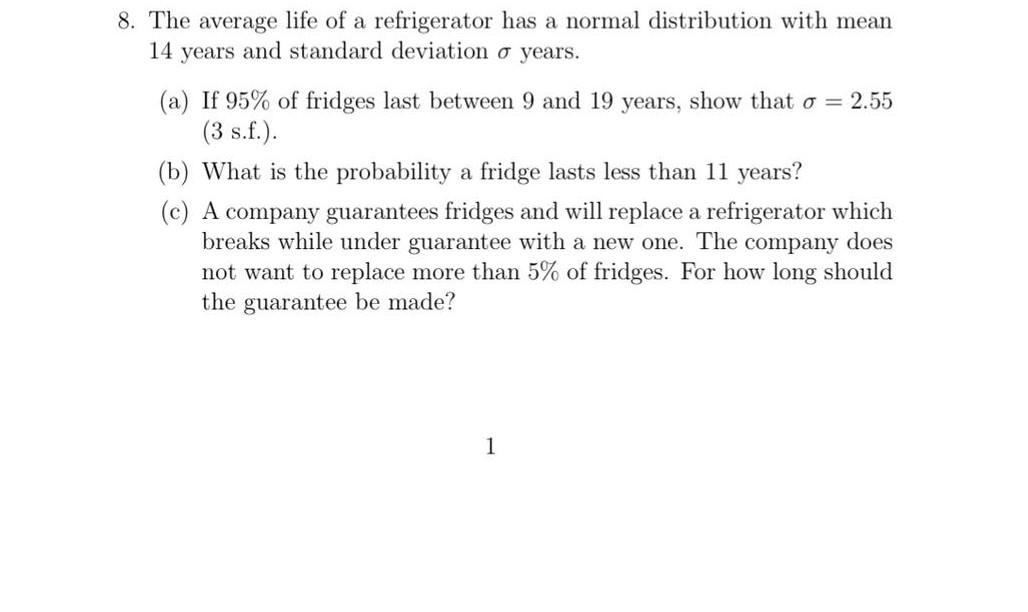 Solved 8. The average life of a refrigerator has a normal