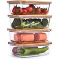 Glass Food Storage Containers with Bamboo Lids (Pack of 4) Stackable