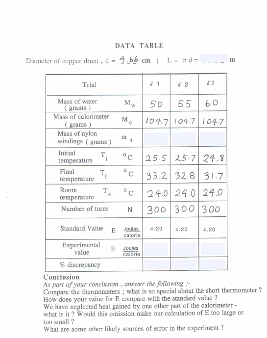 Solved Physics lab Mechanical equivalent of heat I need Lab Mechanical Equivalent Of Heat This is a simplified version of an experiment done by. Although heat and mechanical energy can be expressed in the same units, historically heat has been measured in its own units: In this lab you will be looking at the conversion of mechanical energy into heat energy. The temperature rise of the cylinder is measured. In this experiment, work is. Lab Mechanical Equivalent Of Heat.