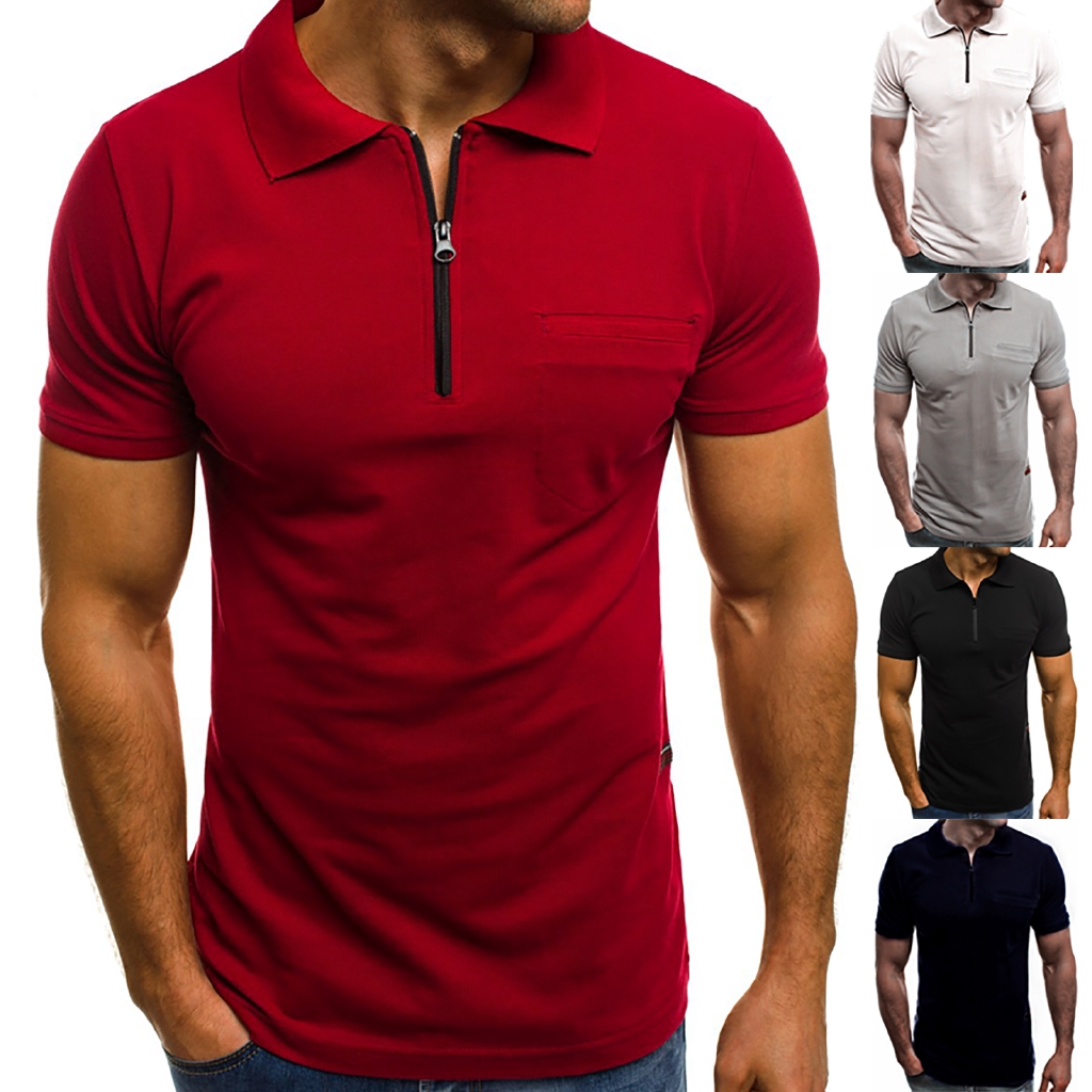 Mens Polo Shirt Solid Lapel Muscle Short Sleeve Zip Neck Business Sport Slim Shopee Singapore