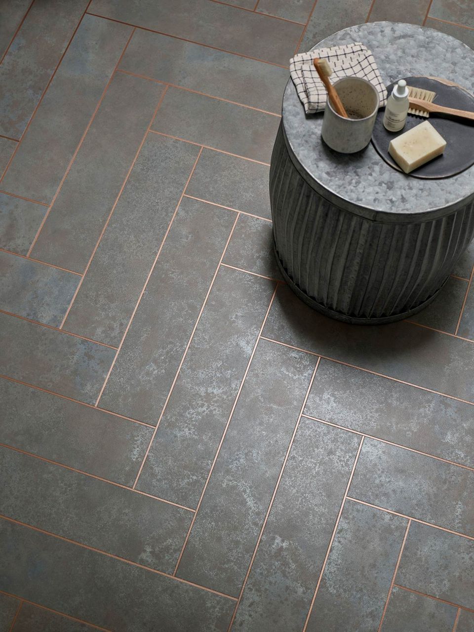 Grey Burnished Metal AR0ARH13 Premium LVT Flooring from the Amtico
