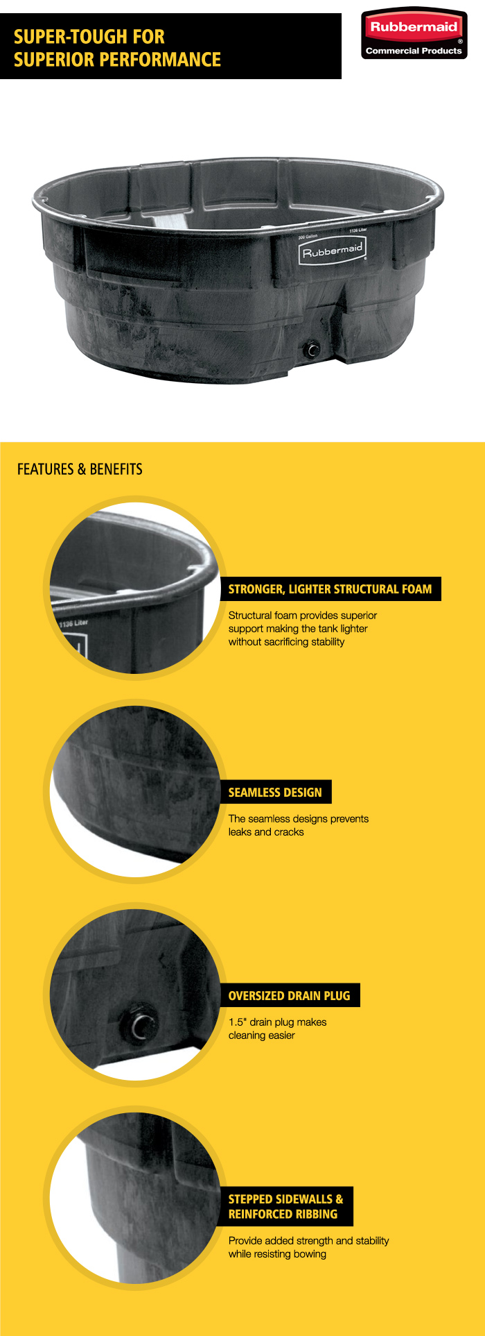Keep your outdoor area in ample supply of fresh water with this rubbermaid fg424700bla 300 gallon black structural foam stock tank with oversized drain plug. Experience the versatility of our multipurpose stock tanks, perfect for enhancing water management on farms and homesteads,. Buy rubbermaid stock tank 300 gallon 25h x 63 1/4l x 69w online at %naamtuincentrum% in %plaats% jump to content. Use for small animal dipping, disinfecting & washing, duramold construction for rugged farm tough applications.