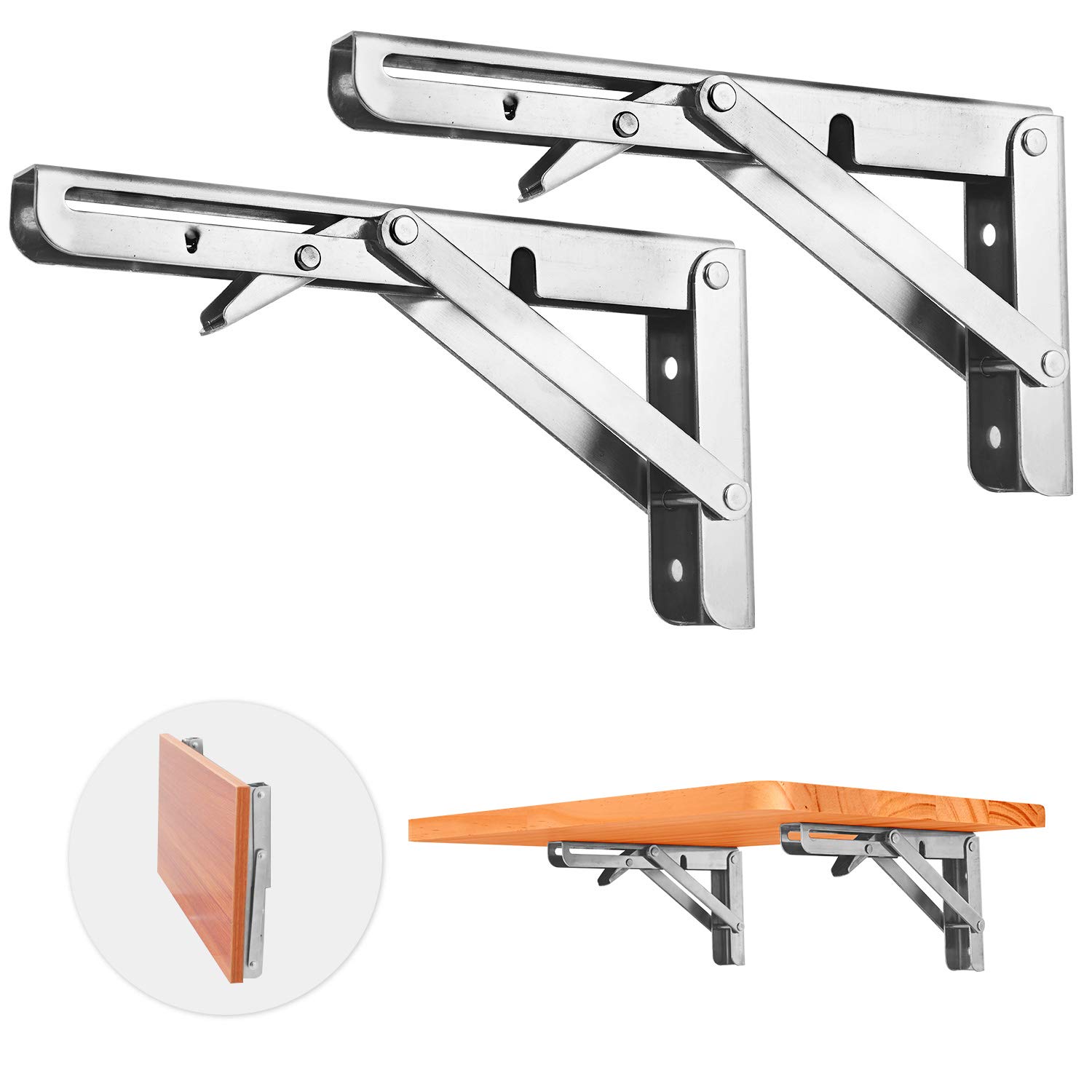 2Pcs Shelf Brackets Stainless Steel Folding Shelf Brackets Heavy Duty Heavy Duty Collapsible Brackets Heavy duty, holds up to 550 lbs. Easy to install—sold in pairs (2*24 inch shelf. Folding shelf brackets 8 inch heavy duty stainless steel collapsible wall mounted shelf for diy bracket,folding bench,work table, space. Heavy Duty Collapsible Brackets.