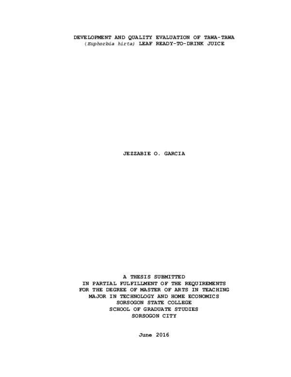 (PDF) DEVELOPMENT AND QUALITY EVALUATION OF TAWA TAWA READYTODRINK