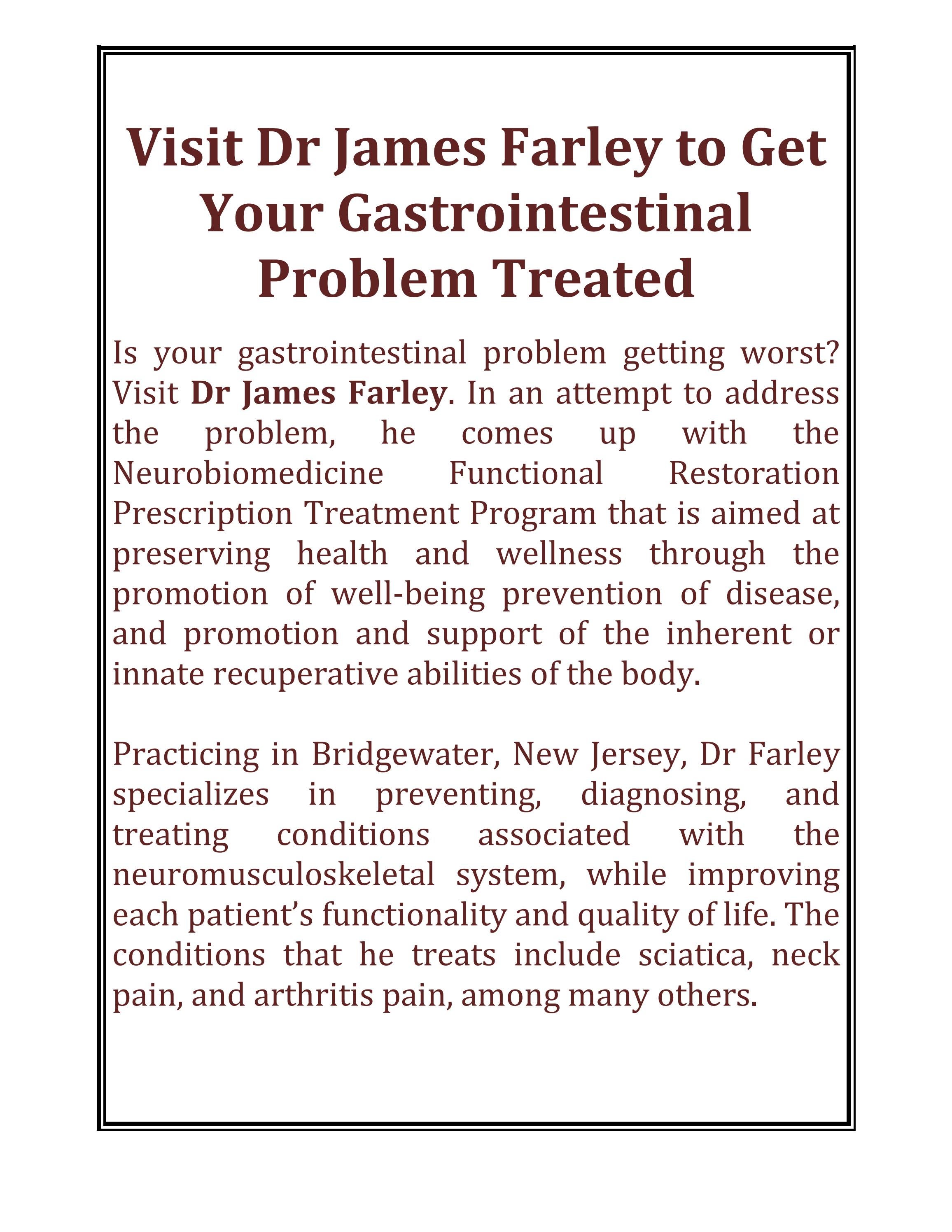 Visit Dr James Farley to Get Your Gastrointestinal Problem Treated by