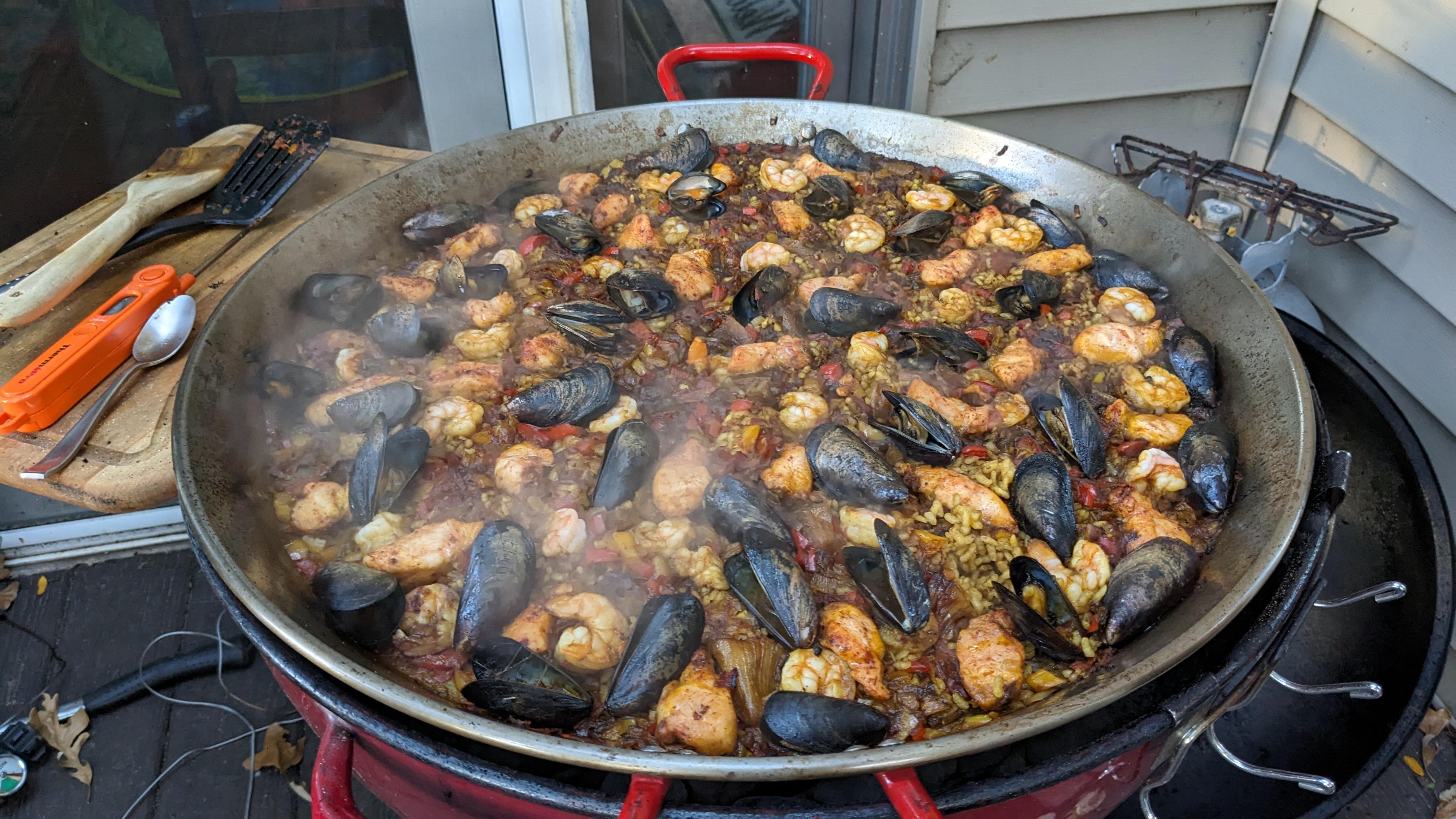 22 inches of Paella on a 22 inch er Kettle Dining and Cooking