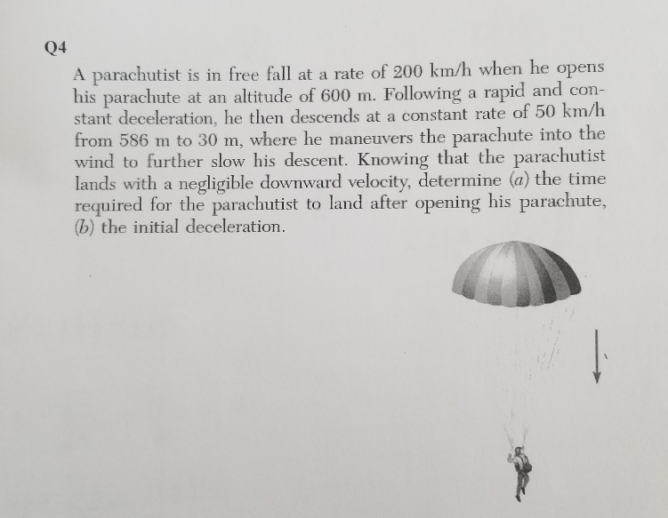 Solved Q4 A parachutist is in free fall at a rate of 200