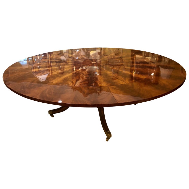 Stunting Flame Mahogany Sunburst Inlaid Circular Dining Table Leaves